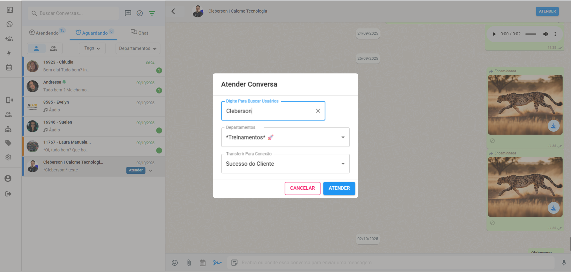 Transferir Conversa: Neste campo é possível transferir a conversa para outro usuário;