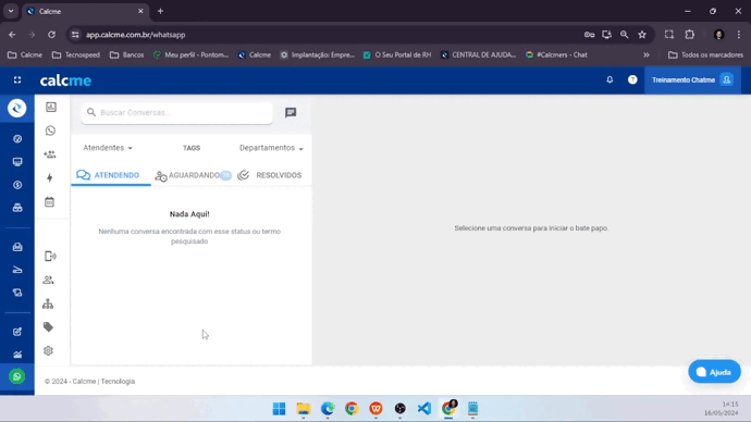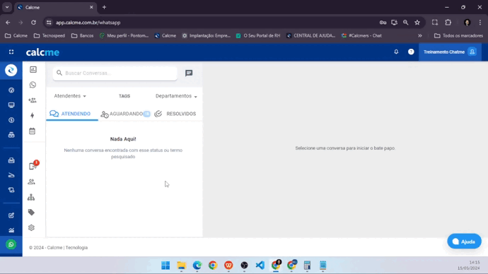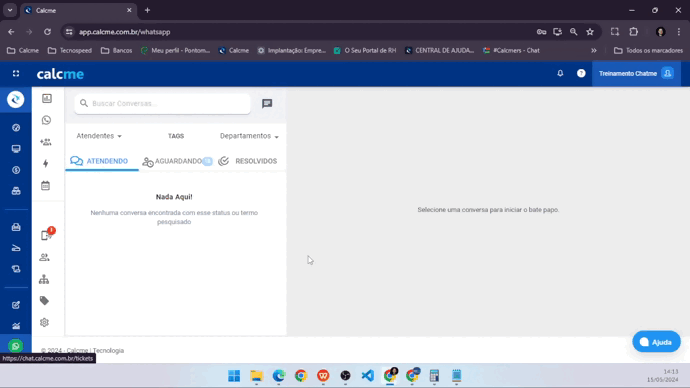 No canto superior esquerdo da nossa tela temos um campo “Buscar Conversas” , campo destinado ao filtro de conversas que estão em andamento, aguardando e conversas já encerradas.