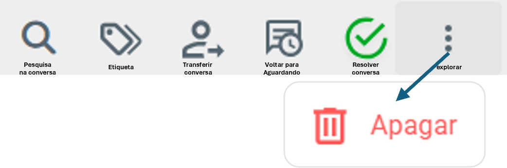 Apagar: Clicando no ícone “Explorar” se apresentará a opção de “Apagar”, clicando nessa opção a conversa será completamente apagada.