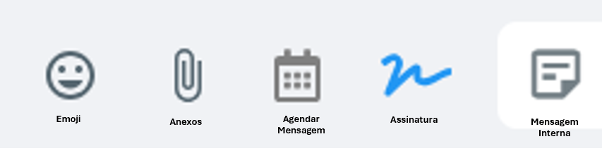 Logo abaixo temos ao lado do campo “Digite uma mensagem ou use ‘/’ para respostas rápidas” os ícones: