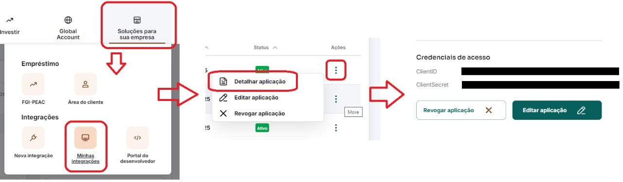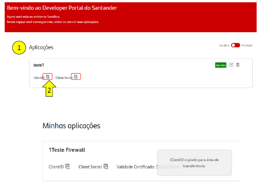 1: Serão geradas 2 chaves para o cliente (ClientID e ClientSecret);