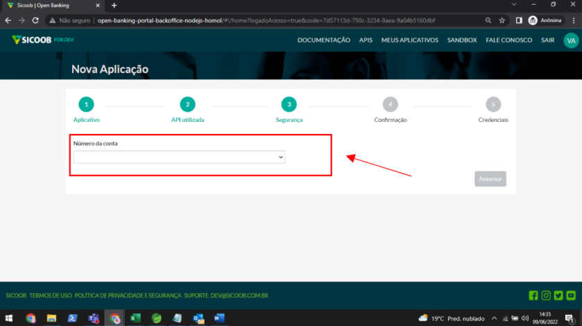 g) Em seguida selecione o Número da Conta para a qual a credencial está sendo gerada.