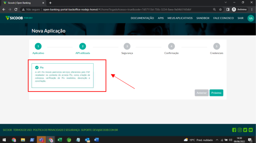 f) Selecione a API de Boleto e clique em “Próximo”.