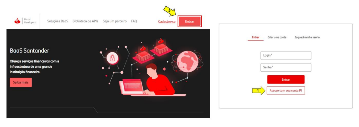 Passo 1 - Acesso ao portal de desenvolvimento Santander: