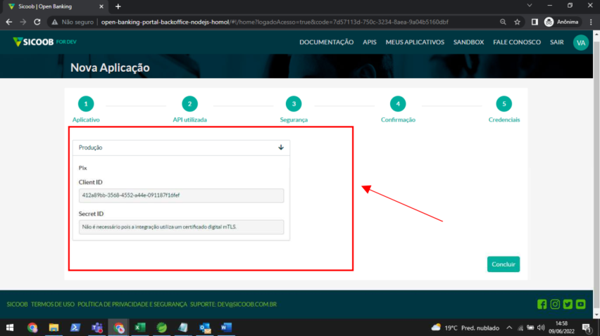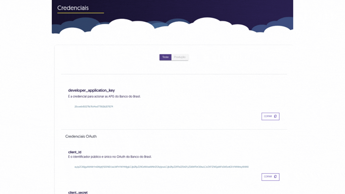 Passo 4 - Obtenção das credenciais em HOMOLOGAÇÃO