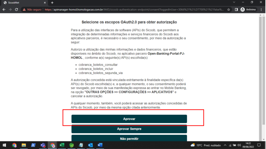d) Em seguida clique em “Aprovar” para autorizar a validação dos seus dados.