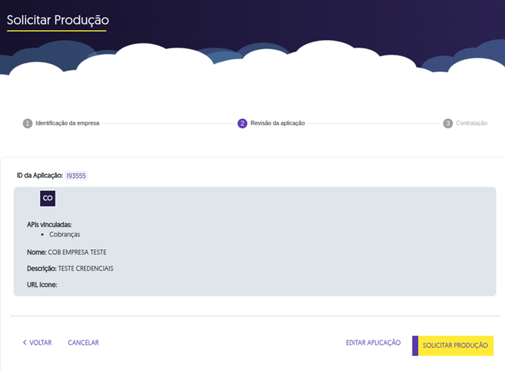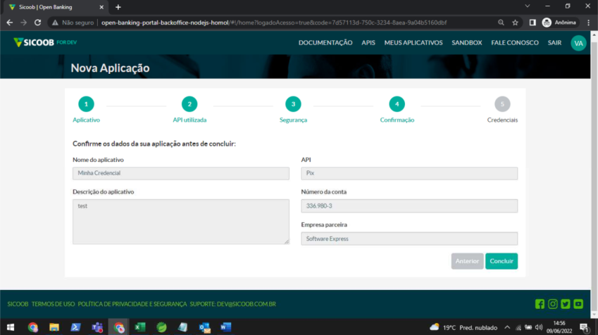 Após o envio no Passo 7, será encaminhado um e-mail ao endereço vinculado ao Usuário Master, confirmando a criação da aplicação