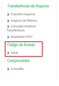 A chave master deve ser solicitada no Sicredi Internet Banking pelo Beneficiário da Conta, o cedente deve entrar no internet banking do Sicredi e ir na área de código de acesso conforme ilustrado na imagem abaixo.