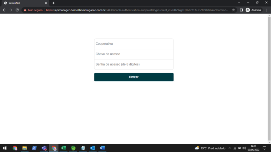 C) Nesse momento o Portal irá validar seus dados a partir de uma autenticação, para isso efetue o login com suas credenciais do SicoobNet.