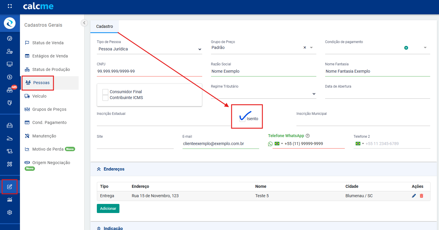 Então, caso sua nota tenha sido rejeitada por este motivo, basta ir novamente a tela de cadastro do seu cliente, marca-lo como Isento e se ele possuir Inscrição Estadual, o sistema irá preencher automaticamente essa informação.