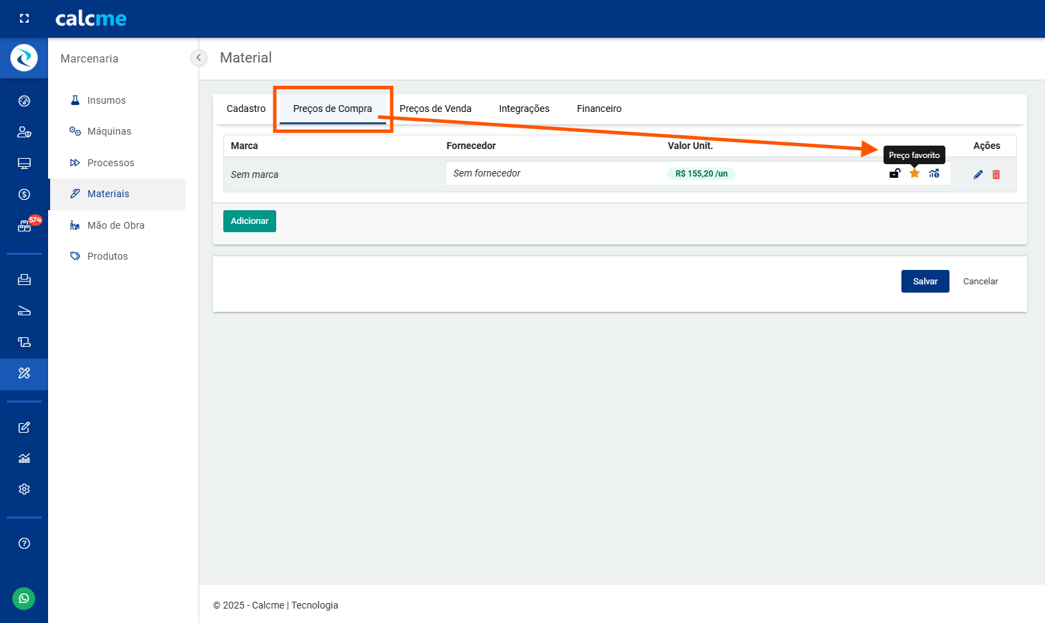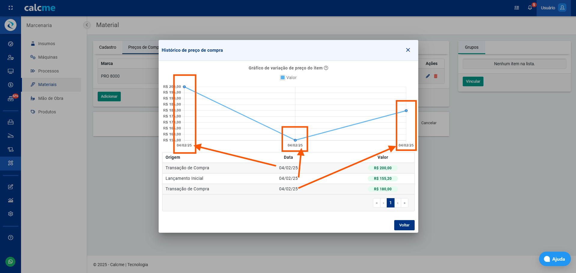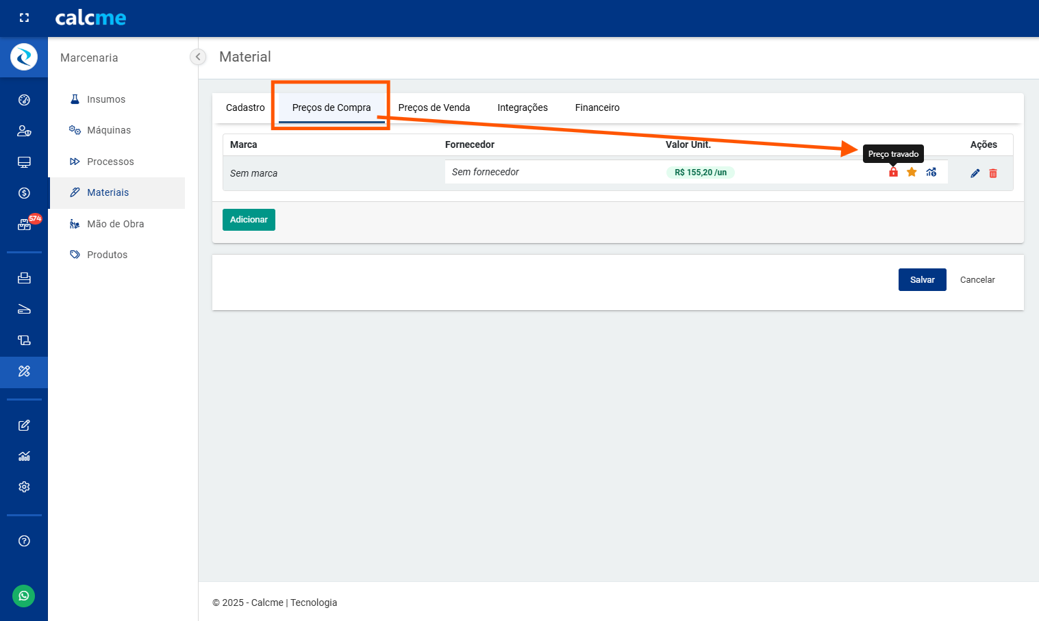 Importante: O preço de compra pode variar com o tempo, mas se suas compras são realizadas no Calcme, os preços são atualizados automaticamente, para saber sobre "Compras", acesse o link a seguir: .