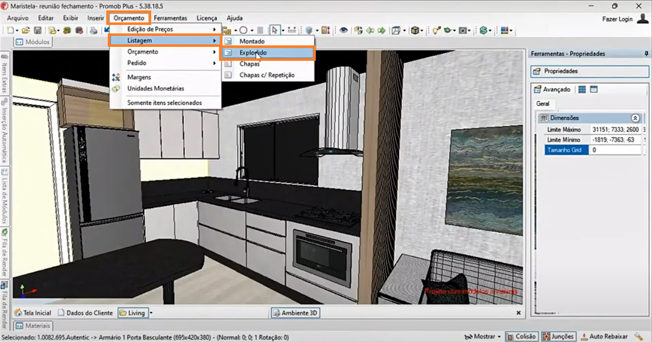 Acesso o projeto ao qual quer realizar o orçamento, clique na aba "Orçamento", "Listagem", escolha a opção "Explodido":
