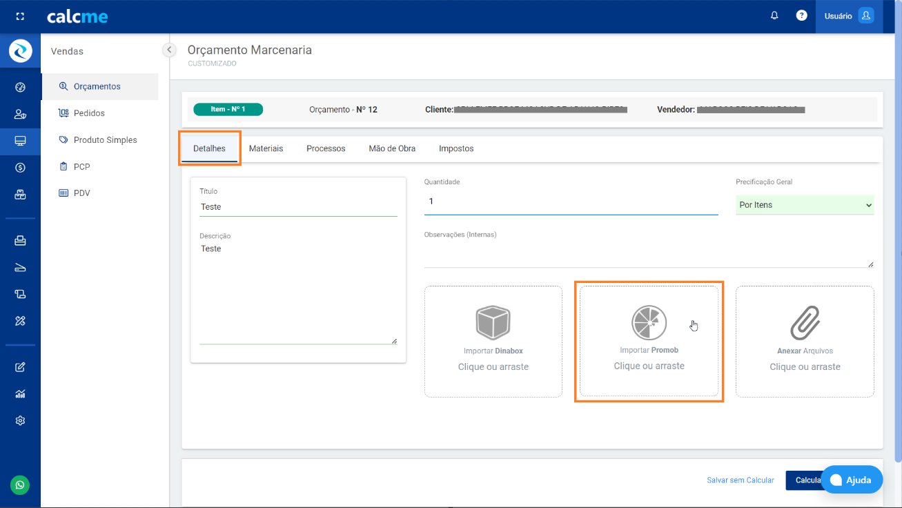 Dentro do orçamento ou pedido clique na opção "Importar Promob":