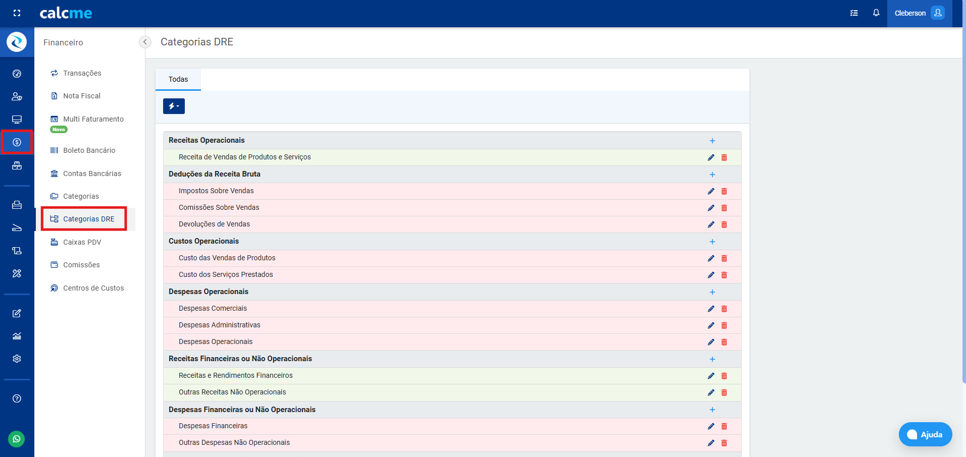 No Calcme, as categorias DRE seguem um padrão nacional para garantir conformidade e consistência. Você não pode criar novas categorias principais, mas pode editar, excluir ou adicionar subcategorias para personalizar o relatório. Para configurar: