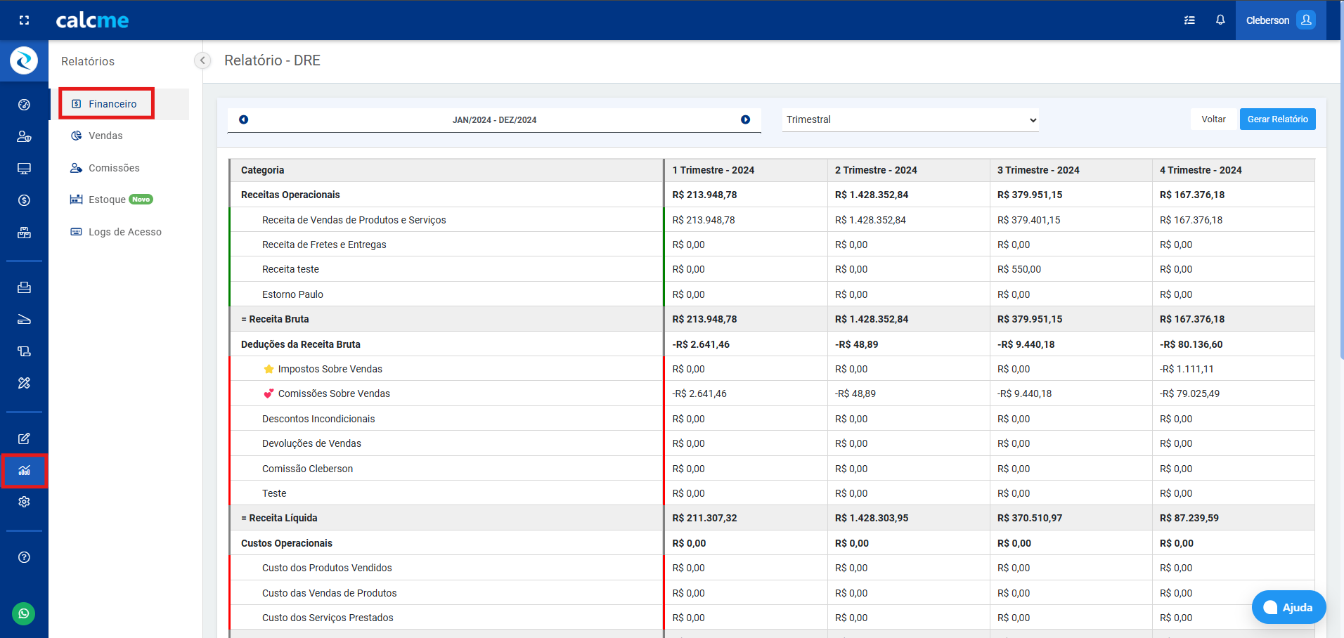 O Relatório DRE de Fluxo de Caixa no Calcme é uma ferramenta essencial para entender a rentabilidade da sua empresa. Ele apresenta a Demonstração do Resultado do Exercício (DRE) de forma clara e detalhada, permitindo avaliar o desempenho financeiro em períodos mensal, bimestral, semestral e anual. Diferentemente de um relatório de fluxo de caixa, ele foca nas receitas, custos e despesas que compõem o lucro ou prejuízo, sem incluir movimentações detalhadas de entradas e saídas de dinheiro ou o saldo final de caixa.