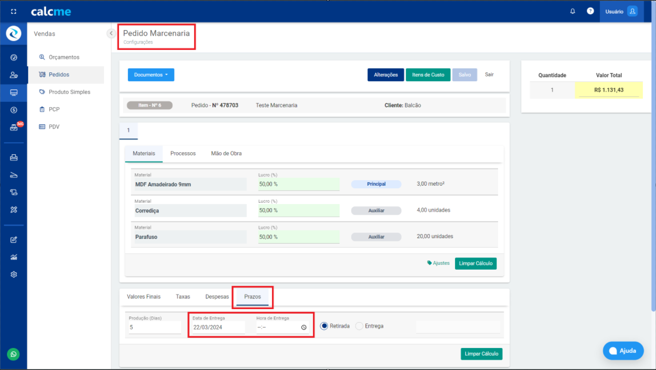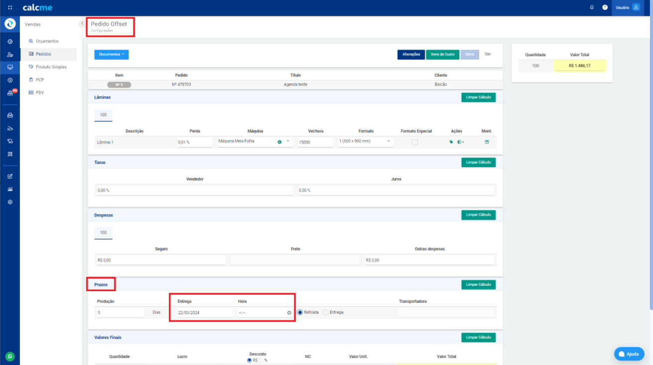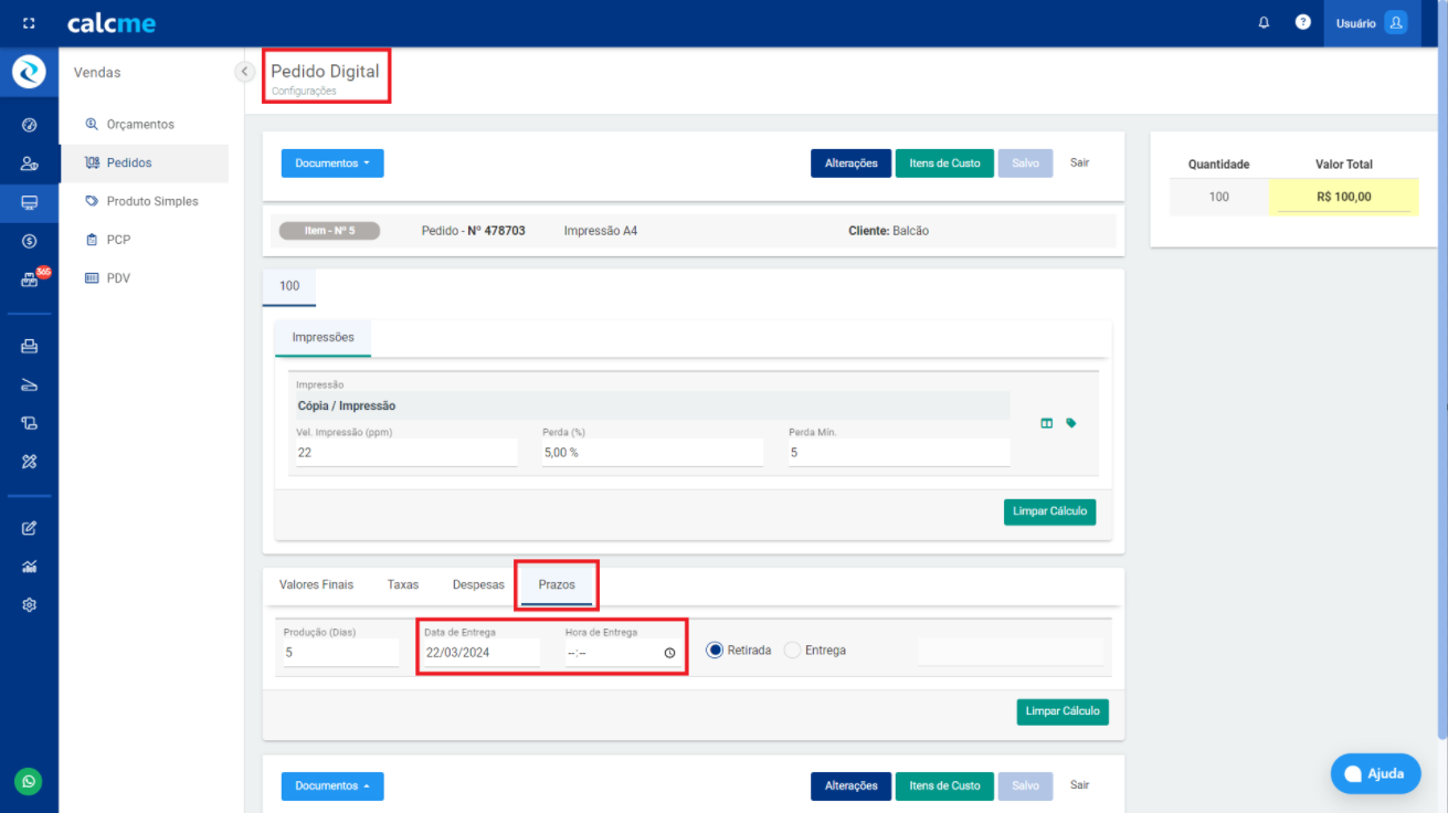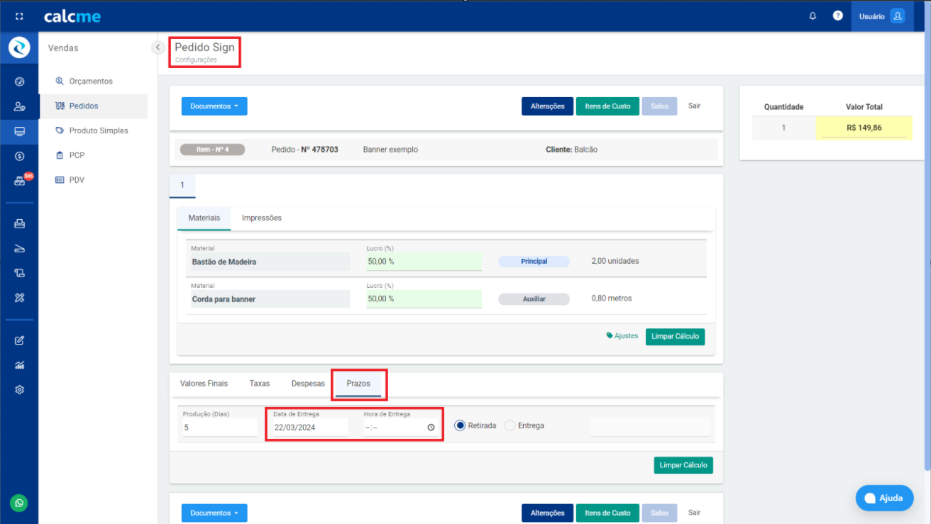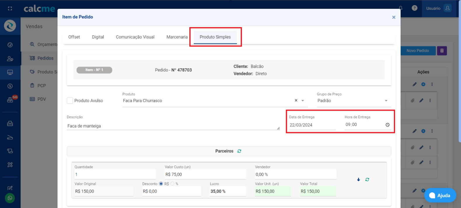 É possível definir uma data de entrega individual para cada produto do orçamento ou pedido?
