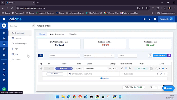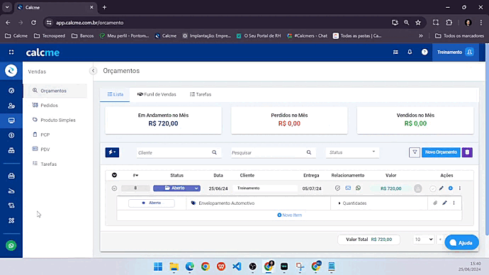 Em cada orçamento aberto é possível incluir tarefas, veja como é simples:
