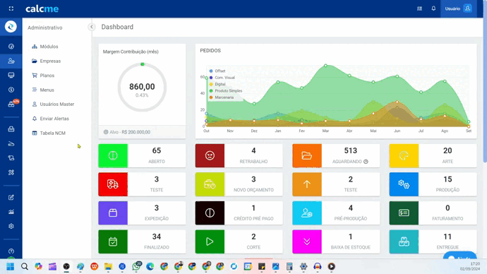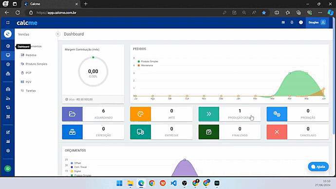Neste local temos os filtros por "Tipo de Tarefa" , "Responsável", "Status" e por "ID" ,todas tarefas criadas e vinculadas ao orçamento iram aparecer no "Funil de Vendas" e as tarefas criadas e vinculadas ao pedido (item) apareceram no "PCP". Desta forma ficará mais simples para poder organizar tanto a parte orçamentaria como de produção.