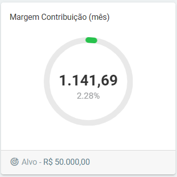 Ele mostra, com base no seu Alvo que é a média do seu Custo Fixo informado nas Configurações Gerais, o quanto seus pedidos estão contribuindo para cobrir suas despesas mensais, expresso em porcentagem.