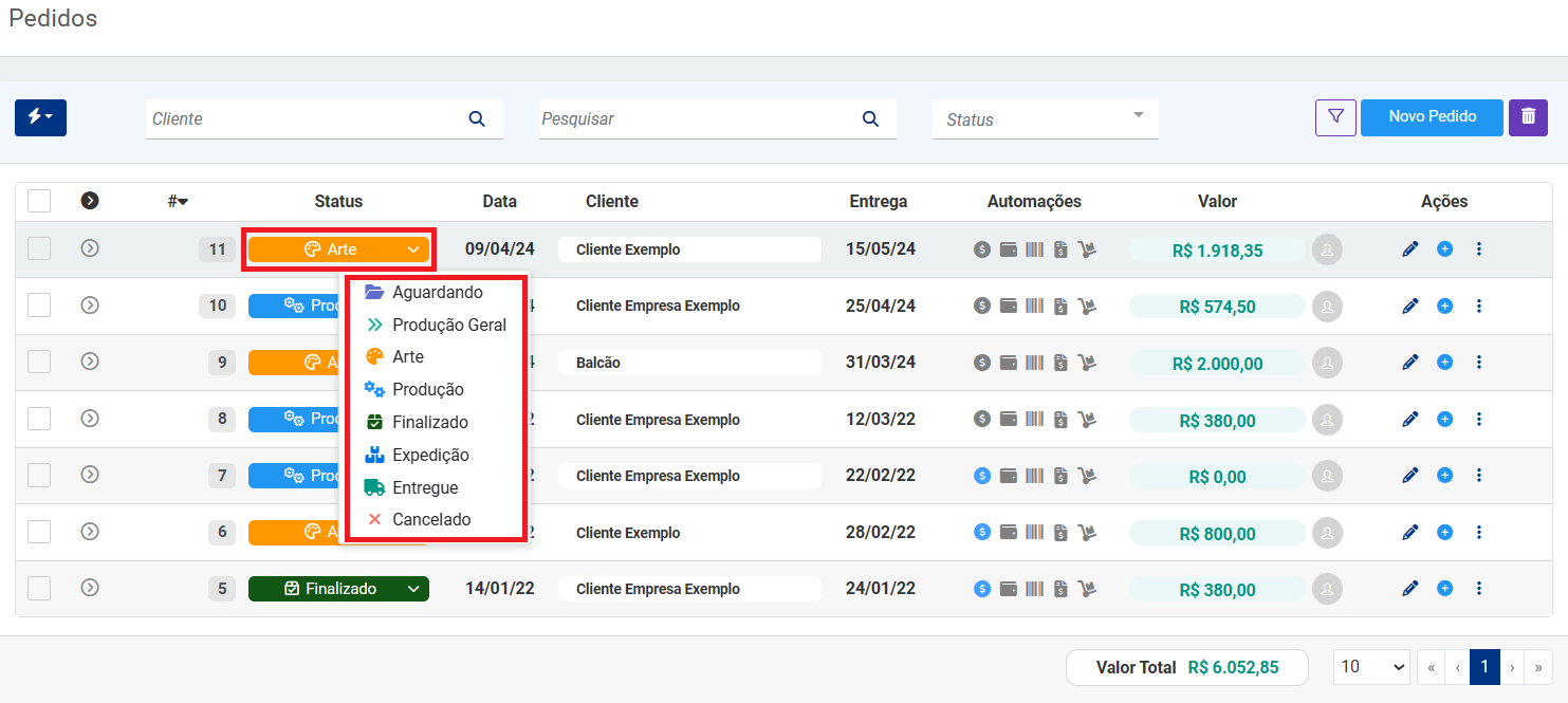 O Pedido está no status desejado?